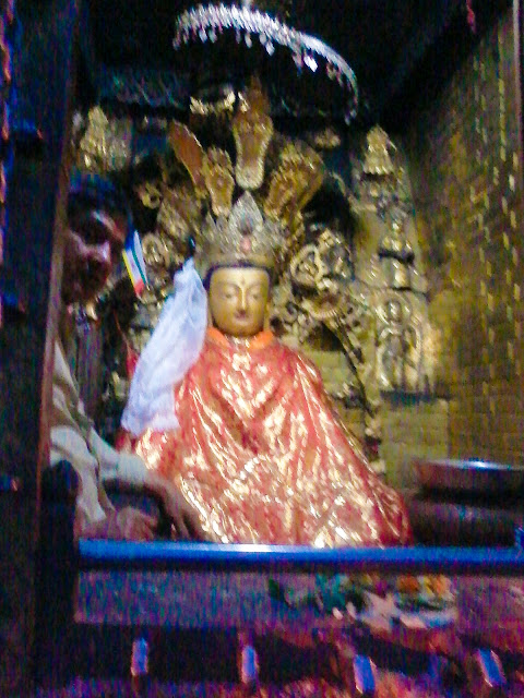 தங்க நிறத்தில் மிகப் பெரியதாக இருக்கிறது. ஒரு மேடையின் மீது வைக்கப்பட்டுள்ளது. கோயில் பரப்பின் நடுவில் மிக உயர்ந்து ஸ்தூபிவிளங்குகிறது. புத்தரின் இரு அருட்கண்கள் மேலே உள்ள சதுரப்பகுதியின் நான்கு பக்கங்களிலும் அழகாக வரையப்பட்டுள்ளது. ஸ்தூபியின் மீது மஞ்சளால் அபிஷேகம் பண்ணுகிறார்கள். ஸ்தூபியின் நான்கு புறங்களிலும் புத்தருக்கு தங்க நிறத்தில் சந்நதிகள் உள்ளன. அங்கு விளக்குகள் ஏற்றி வழிபடுகிறார்கள். ஊதுவத்தி வைக்கிறார்கள் மிகுந்த வேலைப்பாட்டுடன் உள்ளன. சிங்கம் போன்ற விலங்குகளின் வெண்கல உருவங்கள் உள்ளன. வெண்கலமணிகளும் நிறைய உள்ளன. இக்கோயிலின் ஒருபுறத்தில் சீதளாதேவி அம்மன் கோயில் உள்ளது. இங்கே நிறைய இந்துக்கள் வந்து வழிபடுகின்றனர். வலமாகச்சுற்றி வரும்போது புத்தருக்கான ஒரு சந்நிதி மிகப்பெரிதாக உள்ளது. பெரிய புத்தர் சிலை உள்ளது. பெளத்த பிக்ஷுக்கள் அங்கு வழிபாடு முதலியவற்றை நிர்வகித்து வருகிறார்கள். சுயம்புநாத் கோயிலில் இருந்து பார்த்தால் காத்மாண்டு நகர் கீழே அழகாகத் தெரிகிறது. தரிசனம் முடிந்து HOTEL MAHADEV சென்றடைந்தோம்.